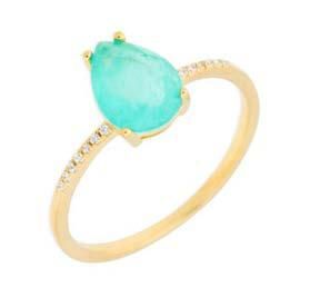 Anillo Liska Plata Dorada MED391AN-VD Circonita Gota Verde Turquesa