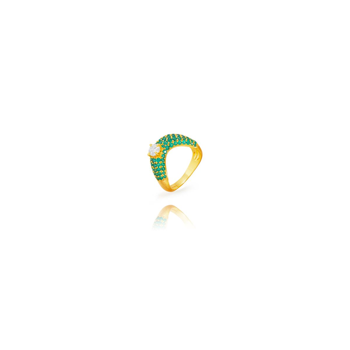Anillo Plata Dorada ANZ0314DOZV10 Ola Circonitas Verdes