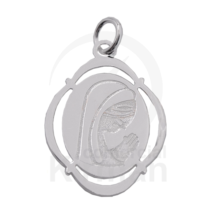 Colgante Plata 072322 Virgen Ovalada Calada 14mm