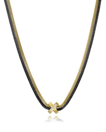 Collar Acero Dorado Bicolor Negro Viceroy 75412C01010 Doble Esterilla Redonda Con X Circonitas