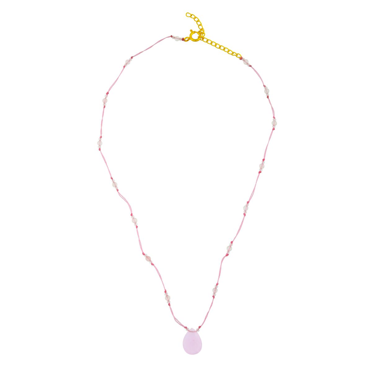 Collar Plata Dorada 10x14mm COM0157DOCR Colgante Lagrima Mineral Cuarzo Rosa