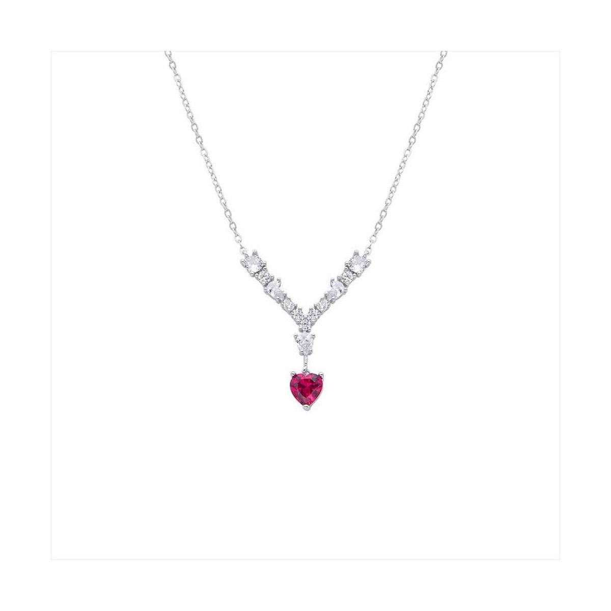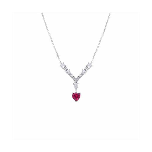 Collar Plata N19914GT Piedra Corazón Rojo Con Circonitas