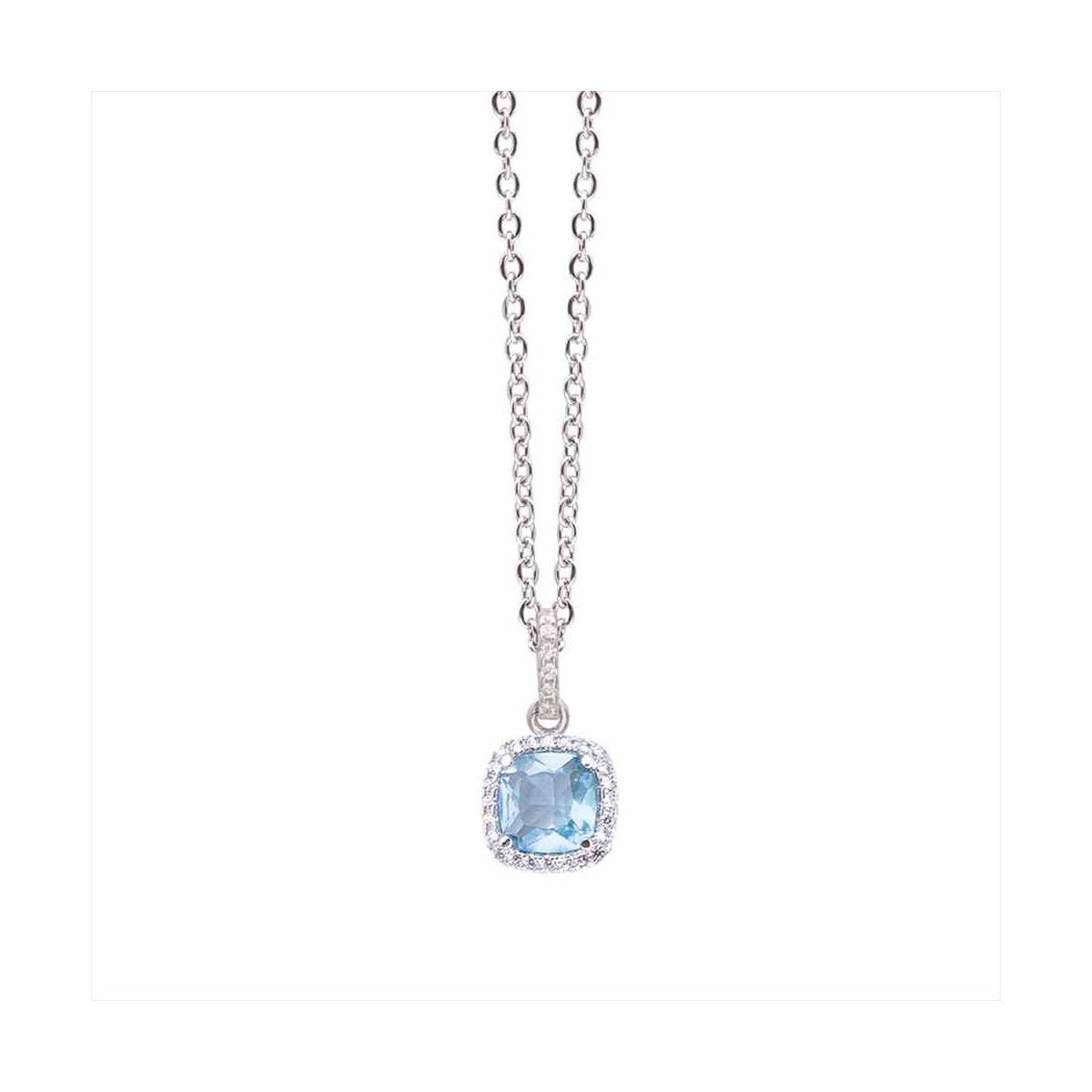Collar Plata y Acero P17910AQ Colgante Azul Con Circonitas