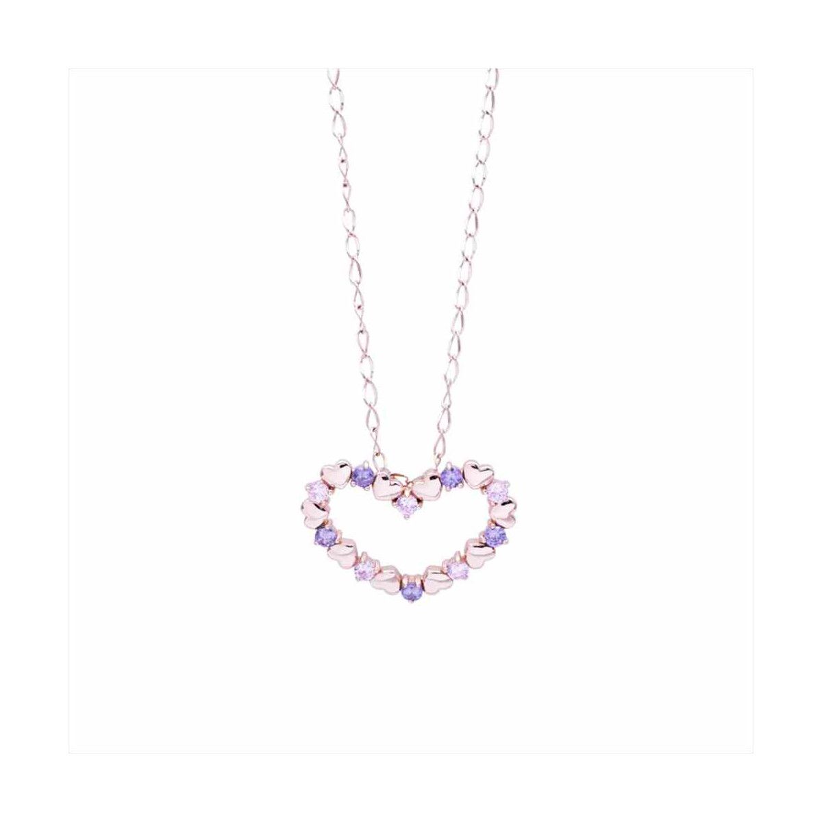 Collar Plata y Acero P19015PL Colgante Corazón Con Circonitas Rosas Bicolor Lilas