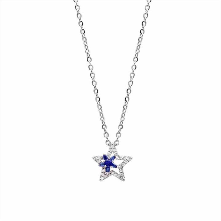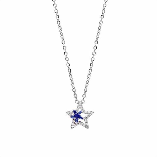 Collar Plata y Acero P21583SP Colgante Estrellas Con Circonitas Bicolor Azul