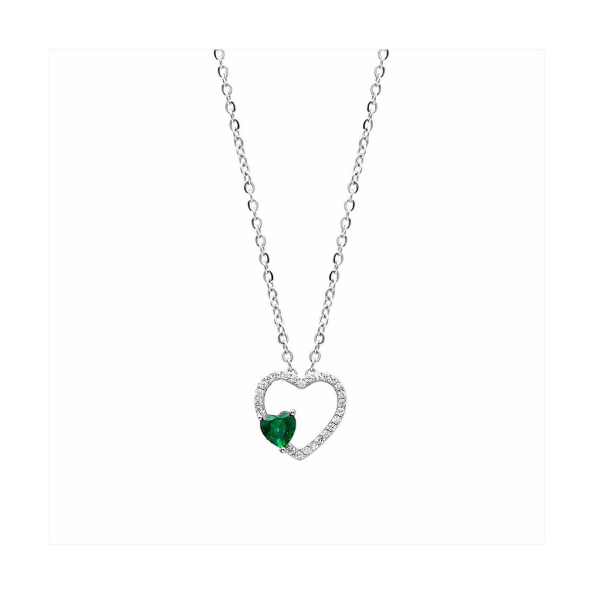 Collar Plata y Acero P21584EM Colgante Corazones Con Circonitas Bicolor Verde