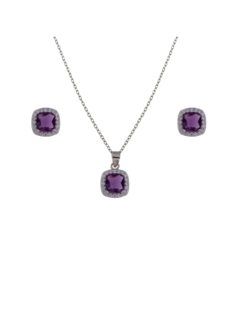 Conjunto Plata Mujer PJUE340/A Circonitas Cuadrada Lila Bicolor Blancas