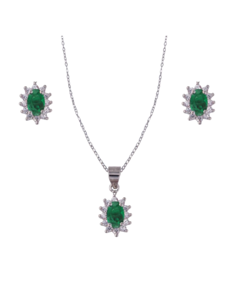 Conjunto Plata Mujer PJUE344/V Circonitas Verde Bicolor Blanca