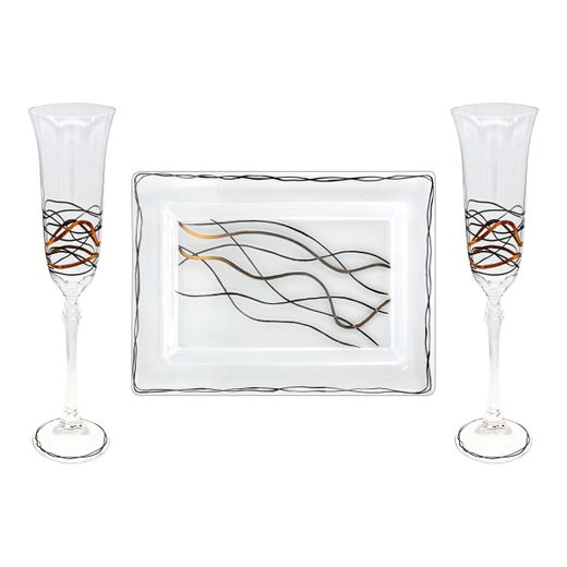 Estuche Cristal GA4262 (2) Copas + Bandeja Decorados A Mano