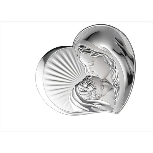 Icono Religioso Corazón Virgen Con Niño Plateado 81295/2L 10,5x9cm