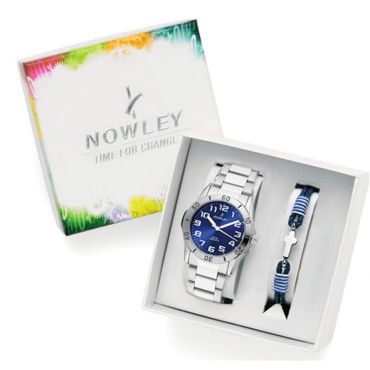 Pack Reloj Nowley Infantil 8-0990-0-3 Acero Analogico Pulsera Piel Azul. Caja de acero inoxidable. Bisel plateado. Brazalete de acero inoxidable. Cierre desplegable de acero inoxidable. Esfera azul. Horas, minutos, segundos. Cristal mineral. Movimiento quartz. Sumergible 50m. Pulsera piel azul. 3 ańos de garantía. Ref 8-0990-0-3
