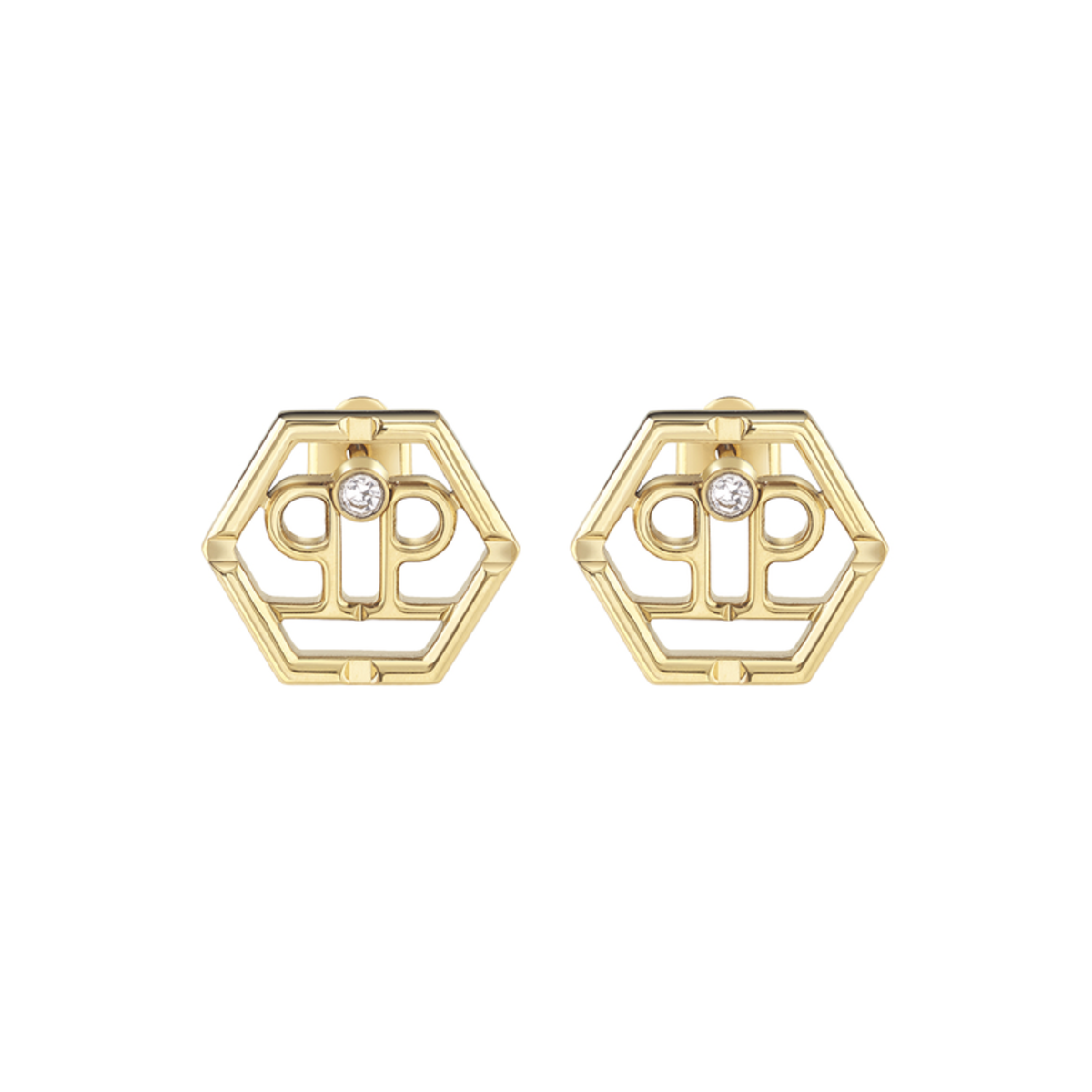 Pendientes Acero Dorado Mujer Philipp Plein PJ2AA06EU Hexágono Logo Philipp Plein Cristales