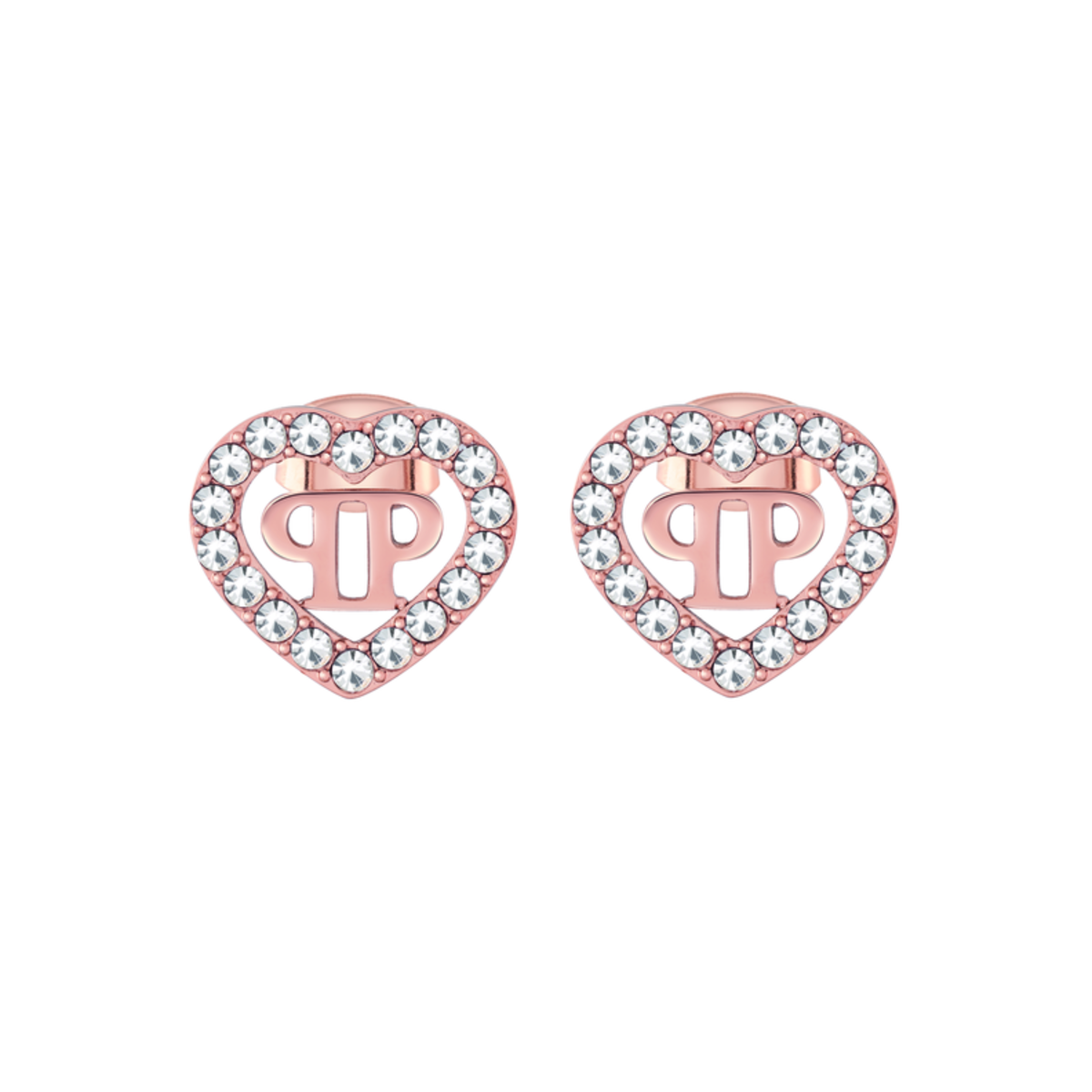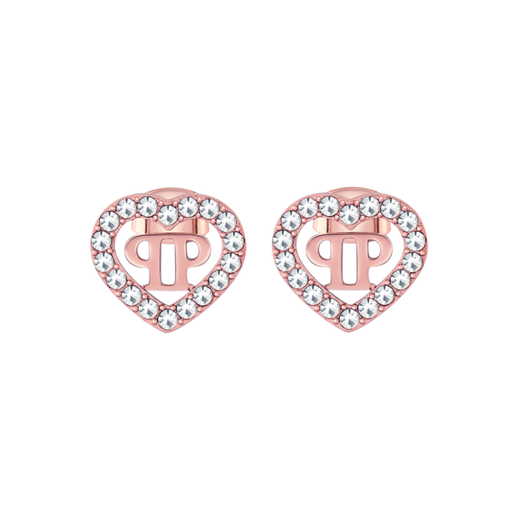 Pendientes Acero Rosado Mujer Philipp Plein PJZEA10EU Corazón Logo PP Cristales. Pendientes fabricados en acero rosado inoxidable. Diseño de corazón con logo PP y cristales. Cierre presión. Certificado de autenticidad y garantía de calidad en los materiales de fabricación. Ref PJZEA10EU
