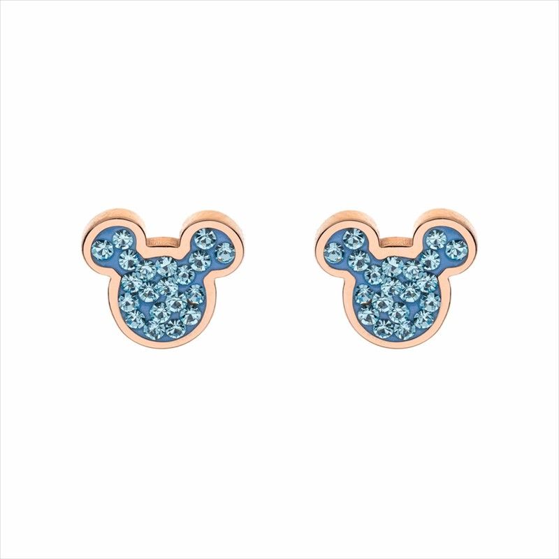Pendientes Disney Acero Rosa ST0021P Mickey Piedras Azules. Pendientes Disney fabricados en Acero Rosa inoxidable. Diseño de Mickey Piedras Azules. Certificado de autenticidad y garantía de calidad en los materiales de fabricación. Ref ST0021P