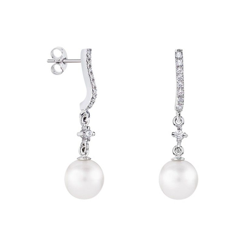 Pendientes Oro Blanco 18kts Esfera Argyor MRM 8mm (18)79B0501DD1 Topacios Perlas Diamantes