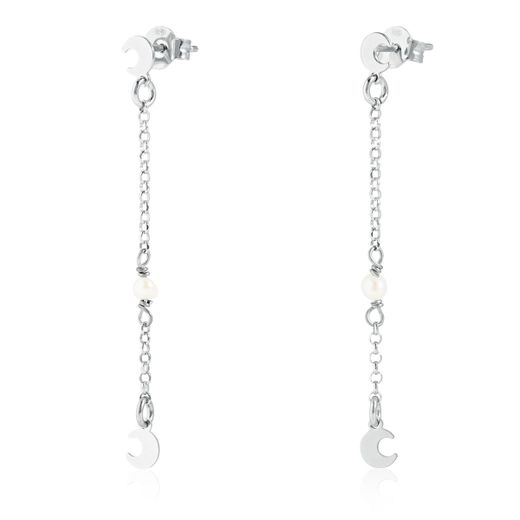 Pendientes Plata Argent Basic Mujer ARK008L Colgante Cadenilla Perlas & Luna
