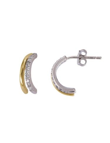 Pendientes Plata Bicolor Dorada Mujer PPAC147/B Aro Doble Banda Circonitas. Pendientes fabricados en plata bicolor dorada de ley 925. Diseño de aro de doble banda con circonitas. Cierre presión. Certificado de autenticidad y garantía de calidad en los materiales de fabricación. Ref PPAC147/B