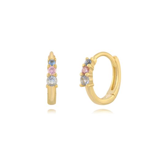 Pendientes Plata Dorada 13mm PEZ1539DOVA Aro Circonitas Multicolor