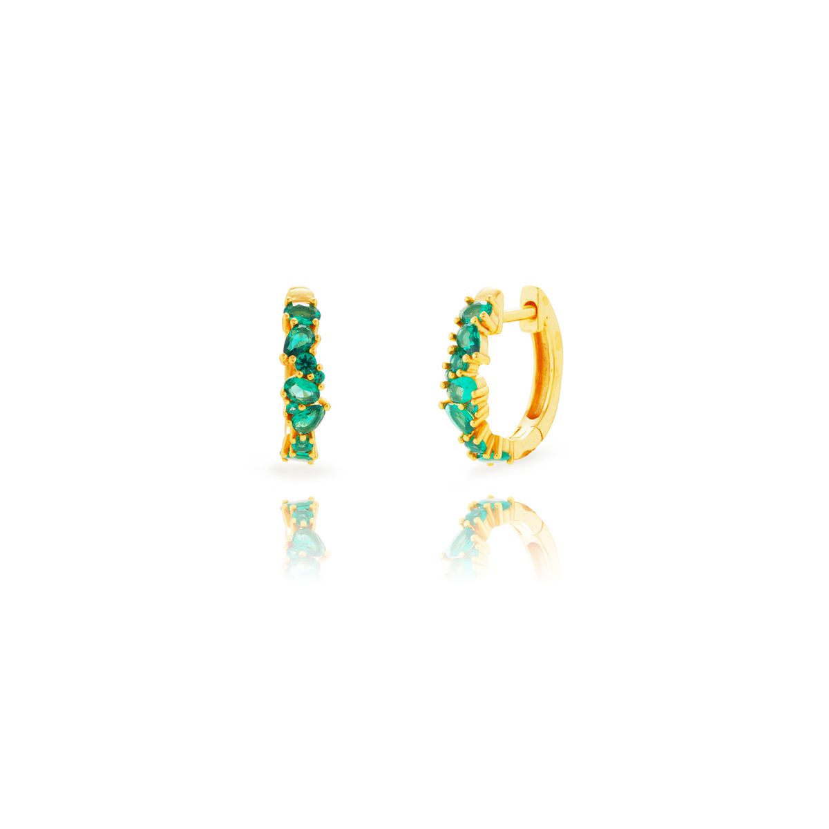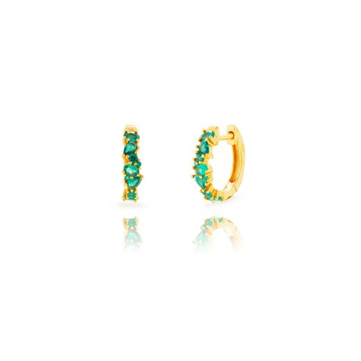 Pendientes Plata Dorada 14mm PEZ1656DOZV Aro Circonitas Verdes