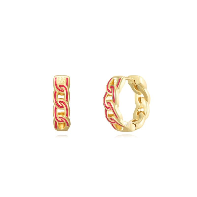 Pendientes Plata Dorada 15mm PEL1114 Aro Eslabón Enamel. Pendientes fabricados en Plata Dorada de ley 925 con baño de oro. Diseño aro eslabón enamel fucsia. Medidas diametro exterior 15mm. Certificado de autenticidad y garantía de calidad en los materiales de fabricación. Ref PEL1114