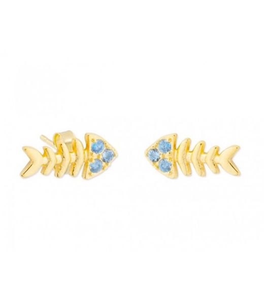 Pendientes Plata Dorada Liska MED318A-D Pez Circonitas Azules. Pendientes fabricados en plata dorada de ley 925 con baño de oro 18kts. Diseño de espina de pescado con circonitas azules. Colección MEDITERRANEA. Certificado de autenticidad y garantía de calidad en los materiales de fabricación. Ref MED318A-D