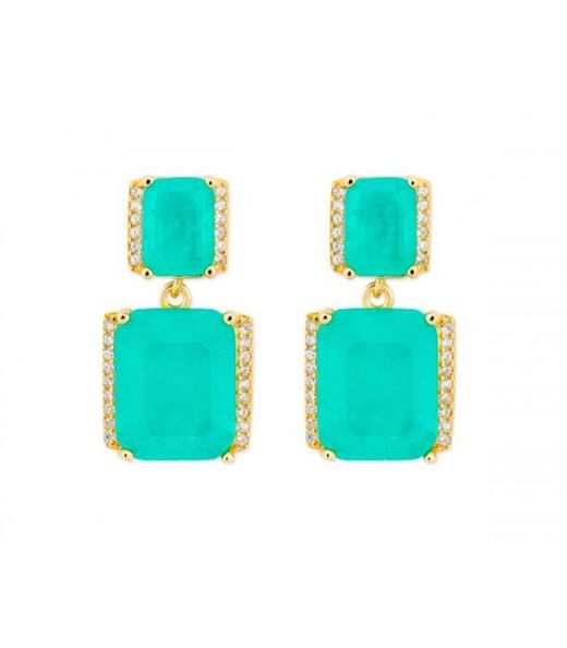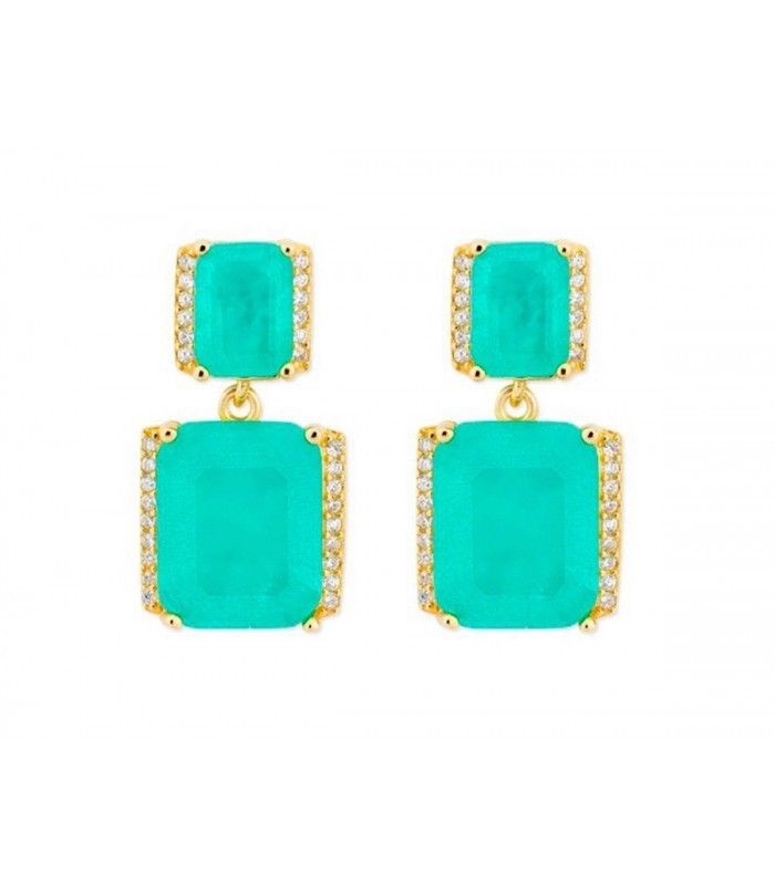 Pendientes Liska Plata Dorada MED388A-VD Colgante Circonita Cuadrada Verde
