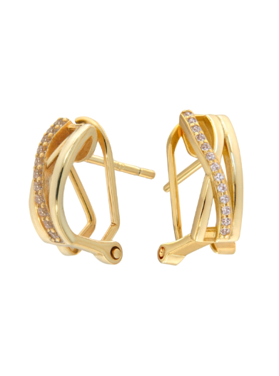 Pendientes Plata Dorada Mujer PPOM44/C Bandas Entrelazadas Circonitas. Pendientes fabricados en plata dorada de ley 925. Diseño de bandas entrelazadas con circonitas. Cierre omega. Certificado de autenticidad y garantía de calidad en los materiales de fabricación. Ref PPOM44/C