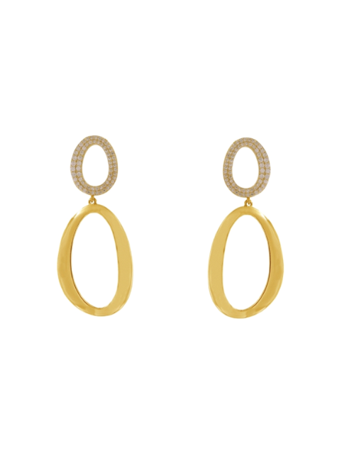 Pendientes Plata Dorada Mujer PSET227/1C Óvalos Circonitas Colgante En Brillo