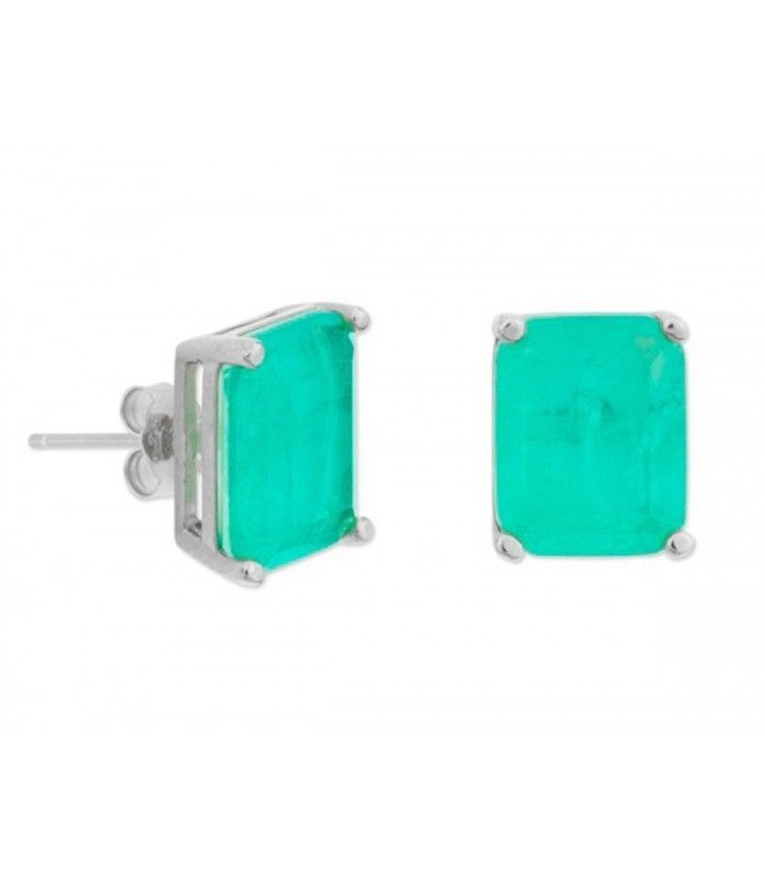 Pendientes Liska Plata MED393A-V Circonita Cuadrada Verde Turquesa