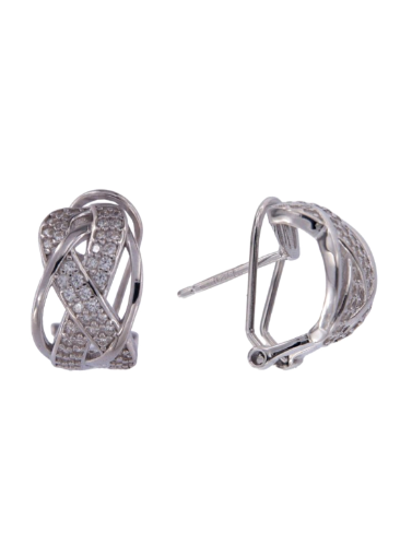 Pendientes Plata Mujer PPOM27 Bandas Cruzadas Circonitas. Pendientes fabricados en plata de ley 925. Diseño de bandas cruzadas con circonitas. Cierre omega. Certificado de autenticidad y garantía de calidad en los materiales de fabricación. Ref PPOM27