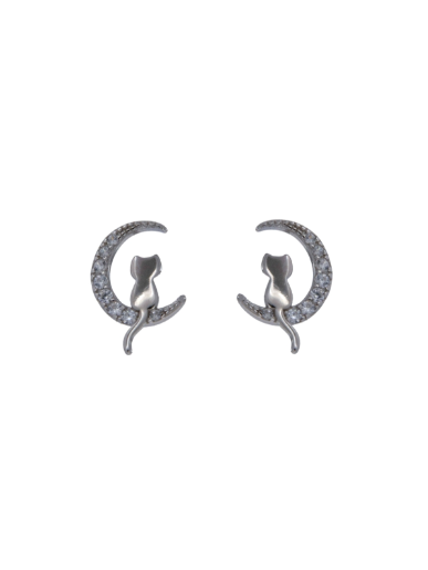 Pendientes Plata Mujer PPR 669 Media Luna C. Gato Circonitas