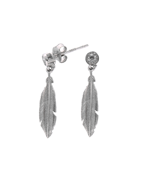 Pendientes Plata Mujer PSET103/1 Circonita Colgante Pluma