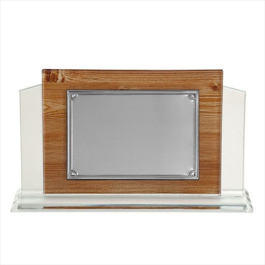 Placa Homenaje Cristal-Aluminio 25x20x6cm P-2233/2C Detalles Esquinas. Placa de homenaje fabricada en cristal y aluminio. Diseño de chapa con detalle en esquinas y base en imitación de madera. Medidas 25x20x6cm. Certificado de autenticidad y garantía de calidad en los materiales de fabricación. Ref P-2233/2C