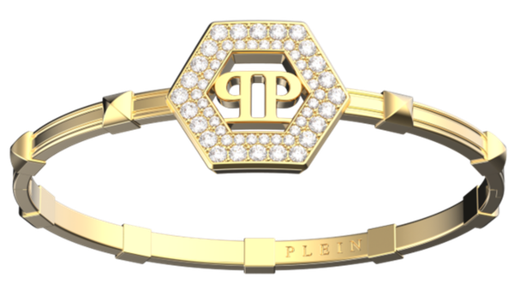 Pulsera Acero Dorado Mujer Philipp Plein PJREA12BU Hexágono Logo Philipp Plein Cristales. Pulsera fabricada en acero dorado inoxidable. Diseño de hexágono con logo Philipp Plein y cristales. Certificado de autenticidad y garantía de calidad en los materiales de fabricación. Ref PJREA12BU