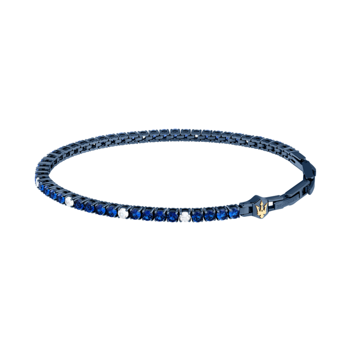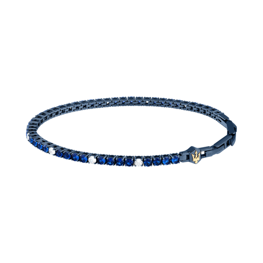 Pulsera Acero Maserati Hombre JM425AVC10 Tennis Eslabones Azules Circonitas Blancas Tridente Maserati