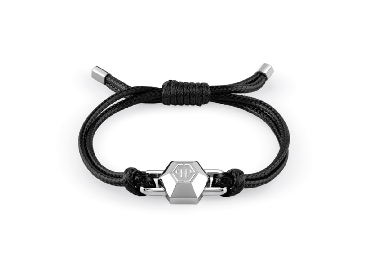Pulsera Piel Negra-Acero Hombre Philipp Plein PJPEA02BU Hexágono Logo PP Grabado