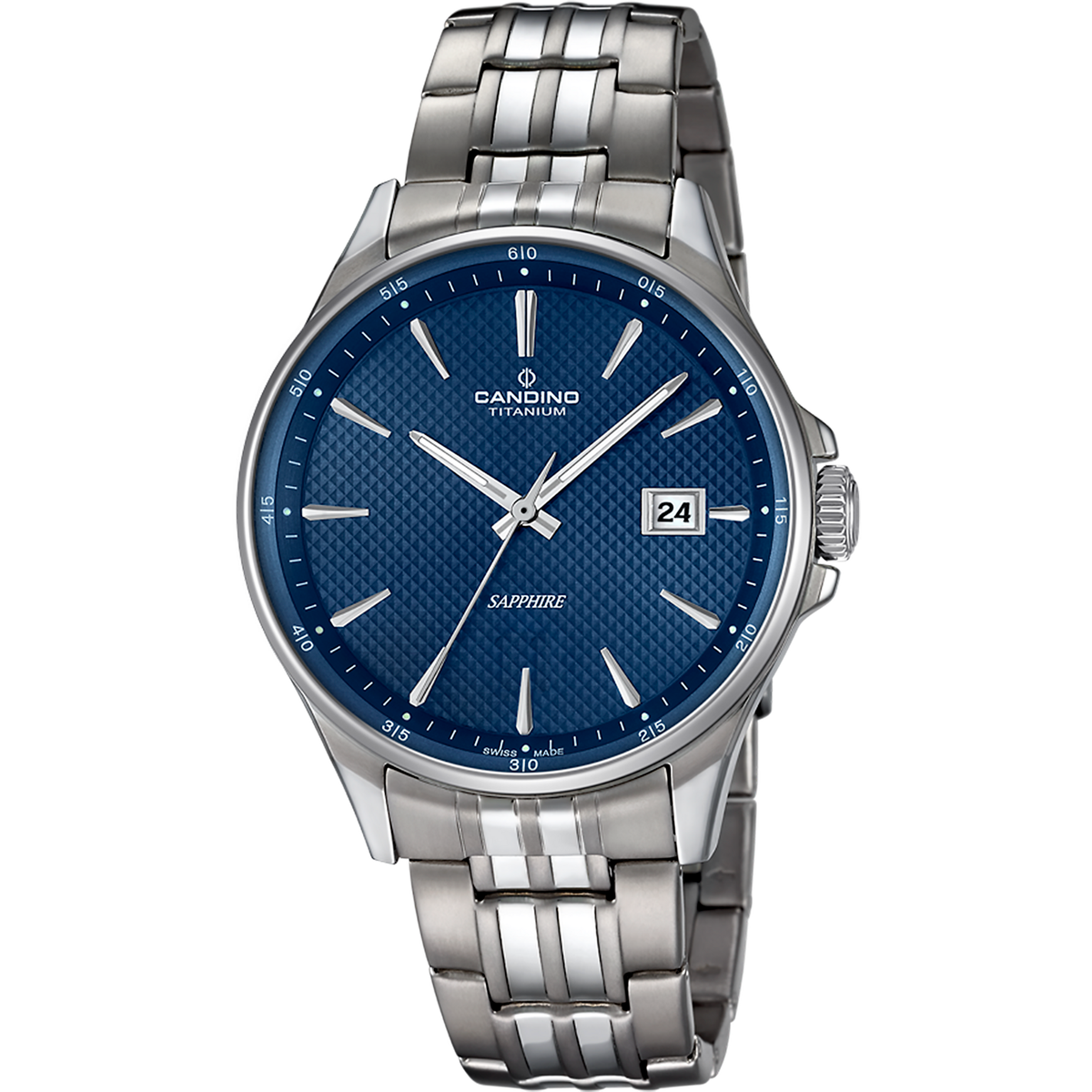 Reloj Candino Hombre C4606/B Swiss Made Titanio Analógico. Caja de titanio de 41mm de diámetro. Bisel plateado. Brazalete de titanio. Cierre desplegable. Esfera azul. Multifunción, calendario. Cristal zafiro. Movimiento quartz suizo. Swiss Made. Sumergible 50m. Peso 93,56gr. 3 años de garantía. Ref C4606/B