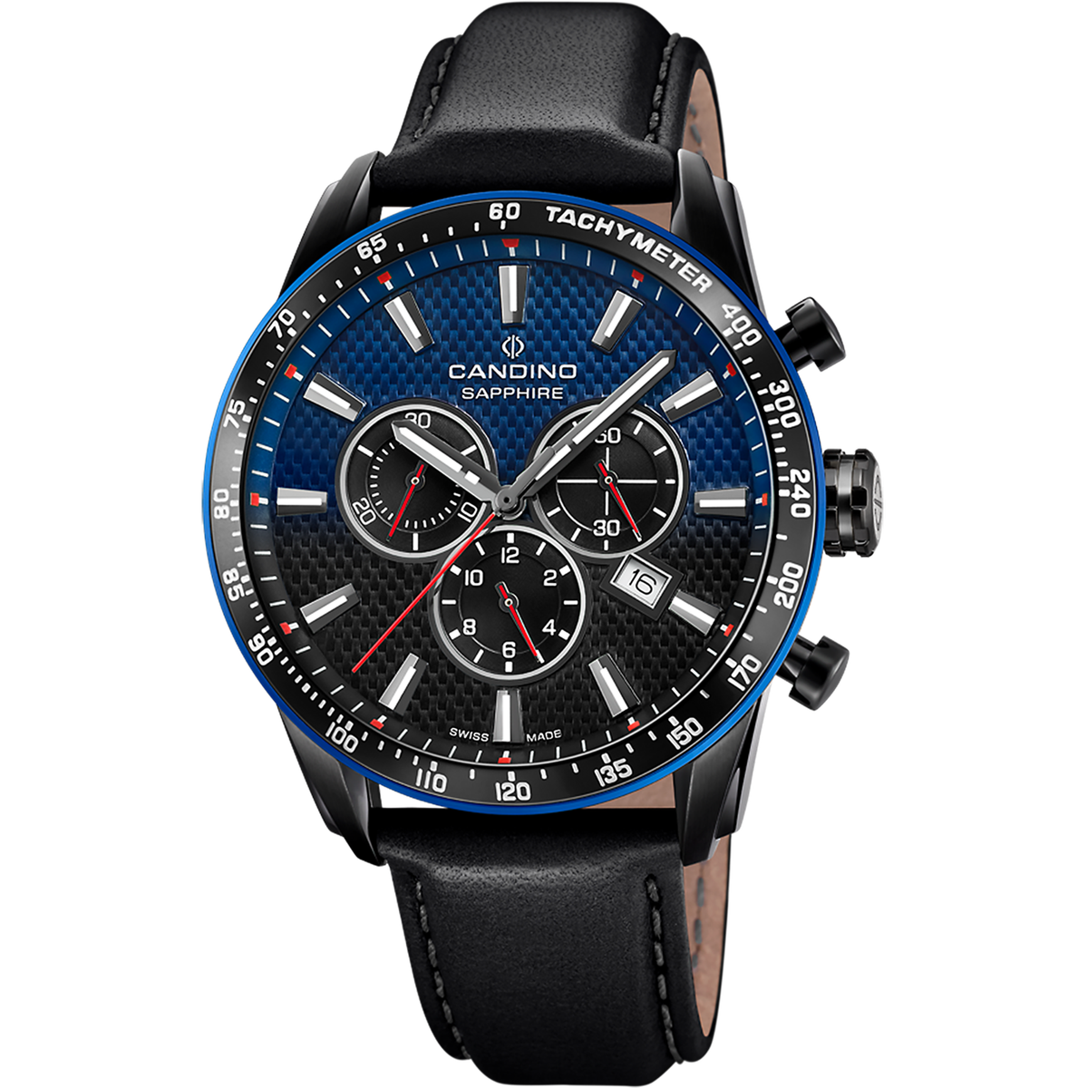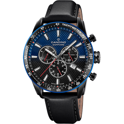 Reloj Candino Hombre C4759/2 Piel Negra Acero Negro Cronógrafo Analógico. Caja de acero negro de 45mm de diámetro. Bisel negro. Correa de piel negra. Cierre hebilla. Esfera negra bicolor azul. Multifunción, calendario, cronógrafo. Cristal zafiro. Movimiento quartz. Swiss Made. Sumergible 100m. 3 años de garantía. Ref C4759/2