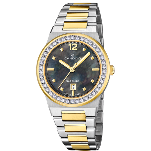 Reloj Candino Mujer C4750/C Acero Bicolor Dorado Circonitas Analógico. Caja de acero bicolor dorado de 34mm de diámetro. Bisel dorado con circonitas. Brazalete de acero inoxidable plateado bicolor dorado. Cierre desplegable. Esfera negra. Multifunción, calendario. Cristal zafiro. Movimiento quartz. Swiss Made. Sumergible 50m. 3 años de garantía. Ref C4750/C