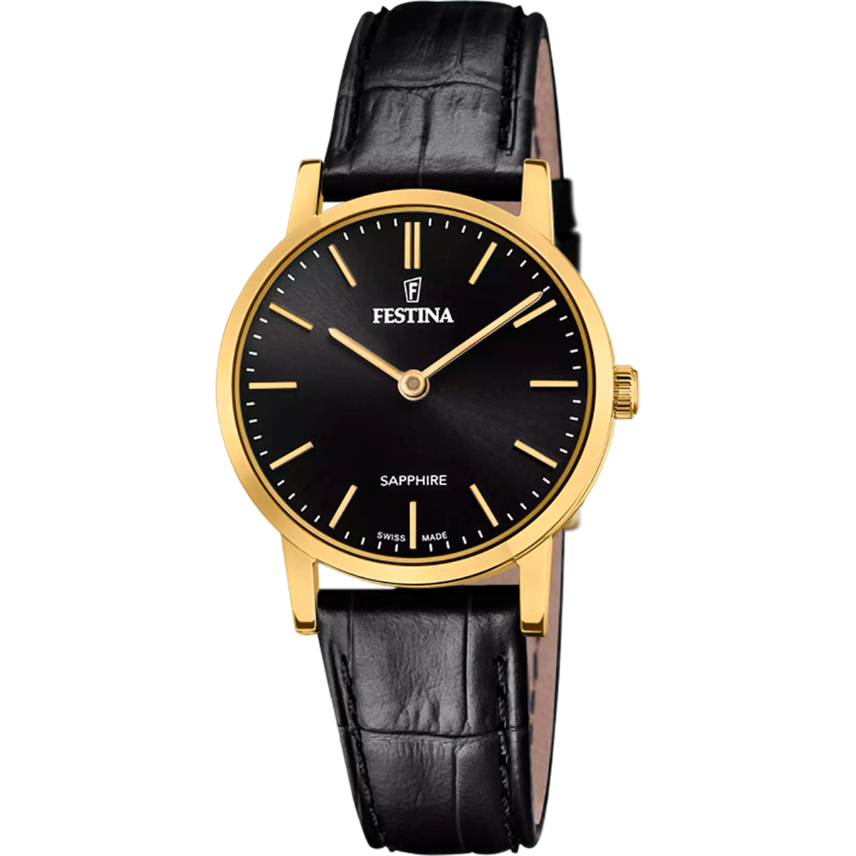 Reloj Festina Mujer F20017/3 Acero Dorado Correa Piel Negra Analógico