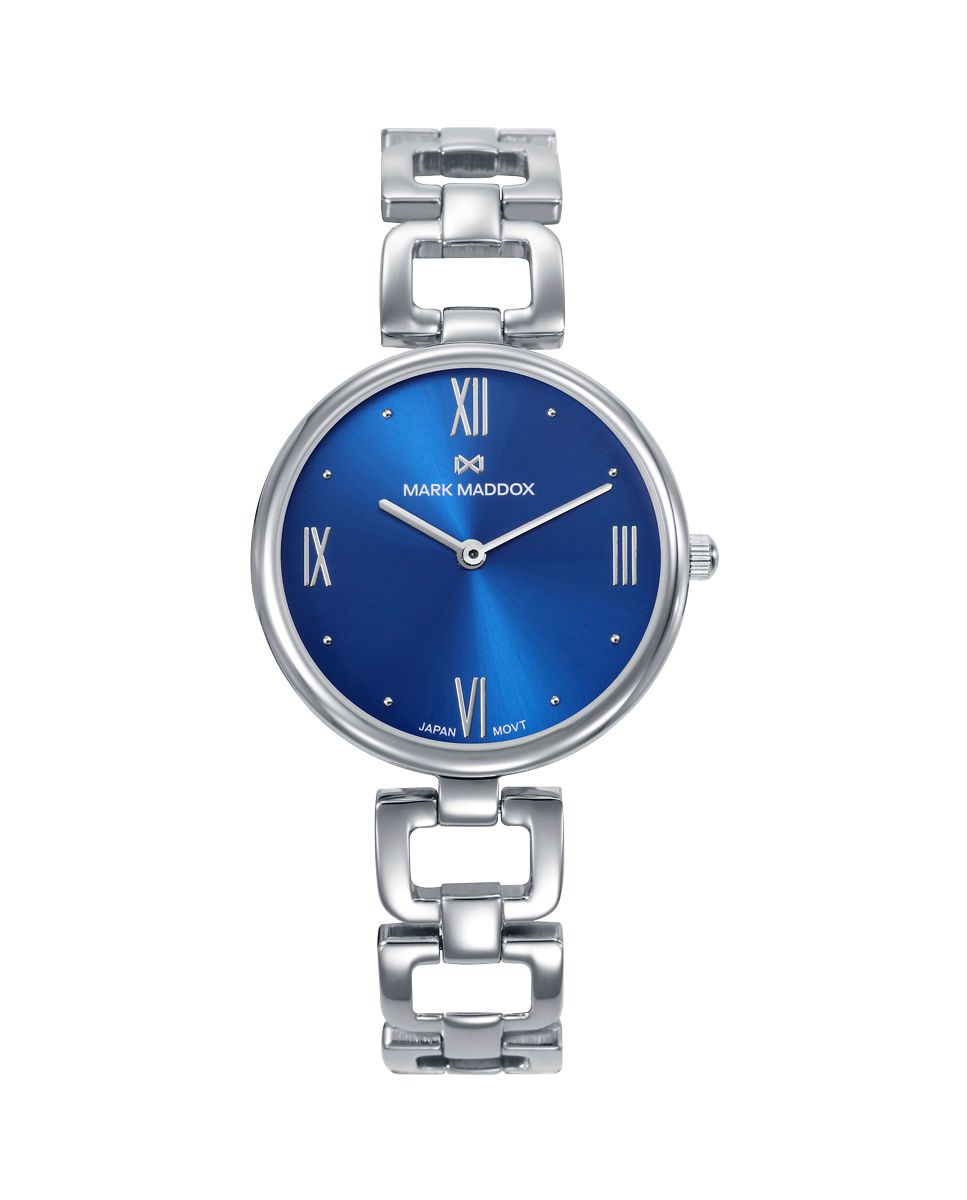 Reloj Mark Maddox Mujer MM1033-33 Acero Plateado Analógico. Caja de acero plateado de 32mm de diámetro. Bisel plateado. Esfera azul. Brazalete de acero plateado. Cierre de joyería. Movimiento quartz. Cristal mineral. Sumergible 50m. 3 años de garantía. Ref MM1033-33