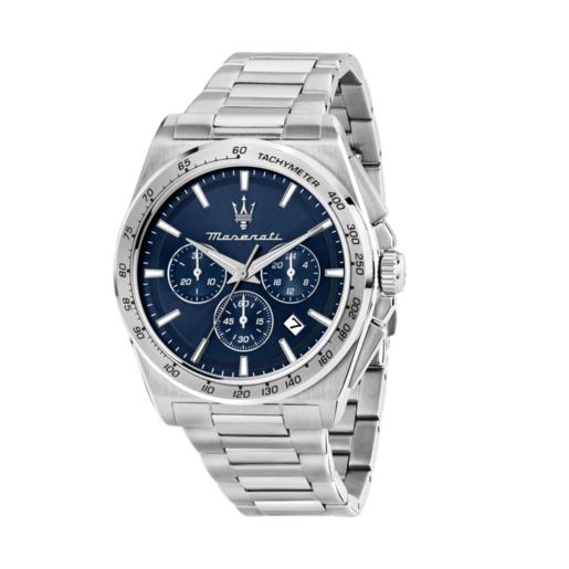 Reloj Maserati Hombre R8873652014 Cronógrafo Acero Analógico. Caja de acero de 43mm de diámetro. Bisel plateado. Brazalete de acero inoxidable. Cierre desplegable. Esfera azul. Multifunción, cronógrafo y calendario. Cristal mineral. Movimiento quartz. Sumergible 100m. 3 años de garantía. Ref R8873652014