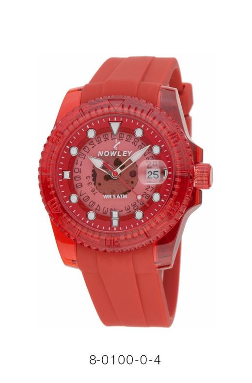 Reloj Nowley Hombre 8-0100-04 Sport Rojo. Caja de plástico transparente rojo de 40mm, bisel de plástico transparente. Correa de caucho rojo. Cierre hebilla. Esfera rojo. Multifunción, calendario. Cristal mineral. Movimiento quartz. Sumergible 50m. 3 años de garantía. Ref 8-0100-04
