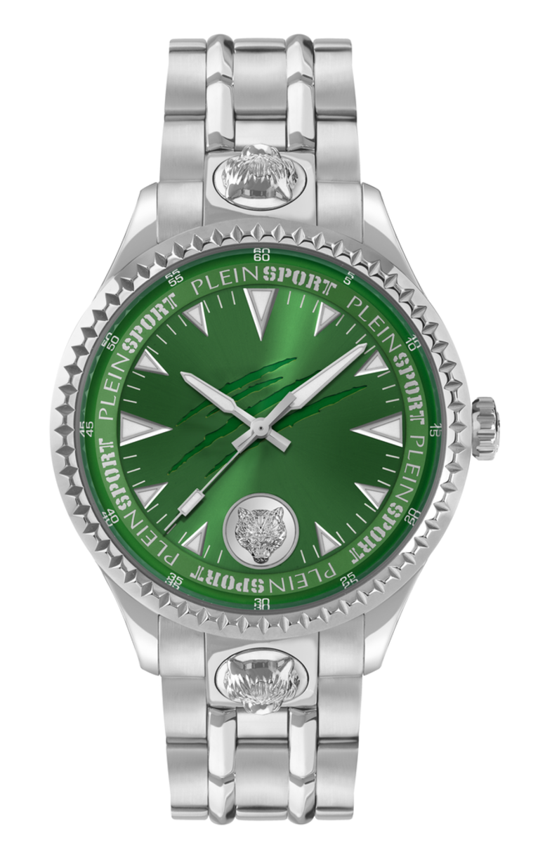 Reloj Philipp Plein Sport Hombre PS5BA0624 Sport Acero Plateado Analógico. Caja de acero de 45mm de diámetro. Bisel plateado. Brazalete de acero plateado. Cierre desplegable. Esfera verde. Cristal mineral. Movimiento quartz. Sumergible 50m. 3 años de garantía. Ref PS5BA0624