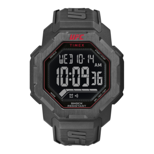 Reloj Timex Hombre TW2V88100 UFC Knockout Sport Gris Digital. Caja de plástico gris de 49mm de diámetro. Bisel gris. Correa de silicón gris. Cierre hebilla. Esfera negra. Multifunción, funciones digitales. Cristal acrílico. Movimiento quartz. Sumergible 100m. 3 años de garantía. Ref TW2V88100