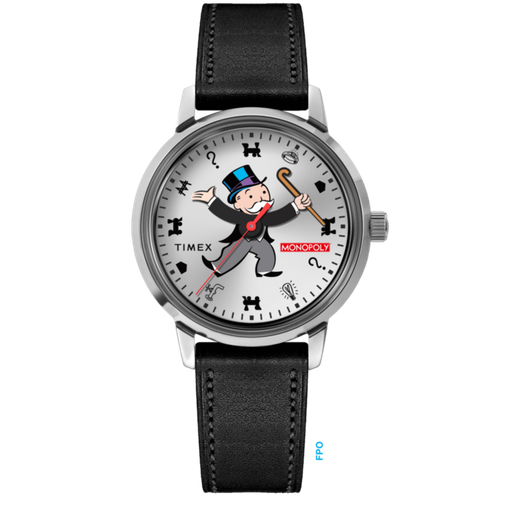 Reloj Timex Hombre TW2Y46900 Monopoly Acero Plateado Analógico. Caja de acero plateado de 38mm de diámetro. Bisel plateado. Correa de piel negra. Cierre hebilla. Esfera blanca con diseño de Monopoly. Cristal acrílico. Movimiento automático. Sumergible 50m. 3 años de garantía. Ref TW2Y46900