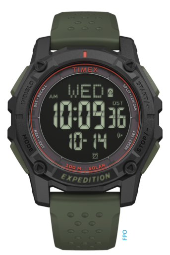 Reloj Timex Hombre TW4B33700 Sport Verde Digital. Caja de policarbonato negro de 49mm de diámetro. Bisel negro. Correa de silicón verde. Cierre hebilla. Esfera negra. Multifunción, calendario y funciones digitales. Cristal acrílico. Movimiento quartz. Sumergible 100m. 3 años de garantía. Ref TW4B33700