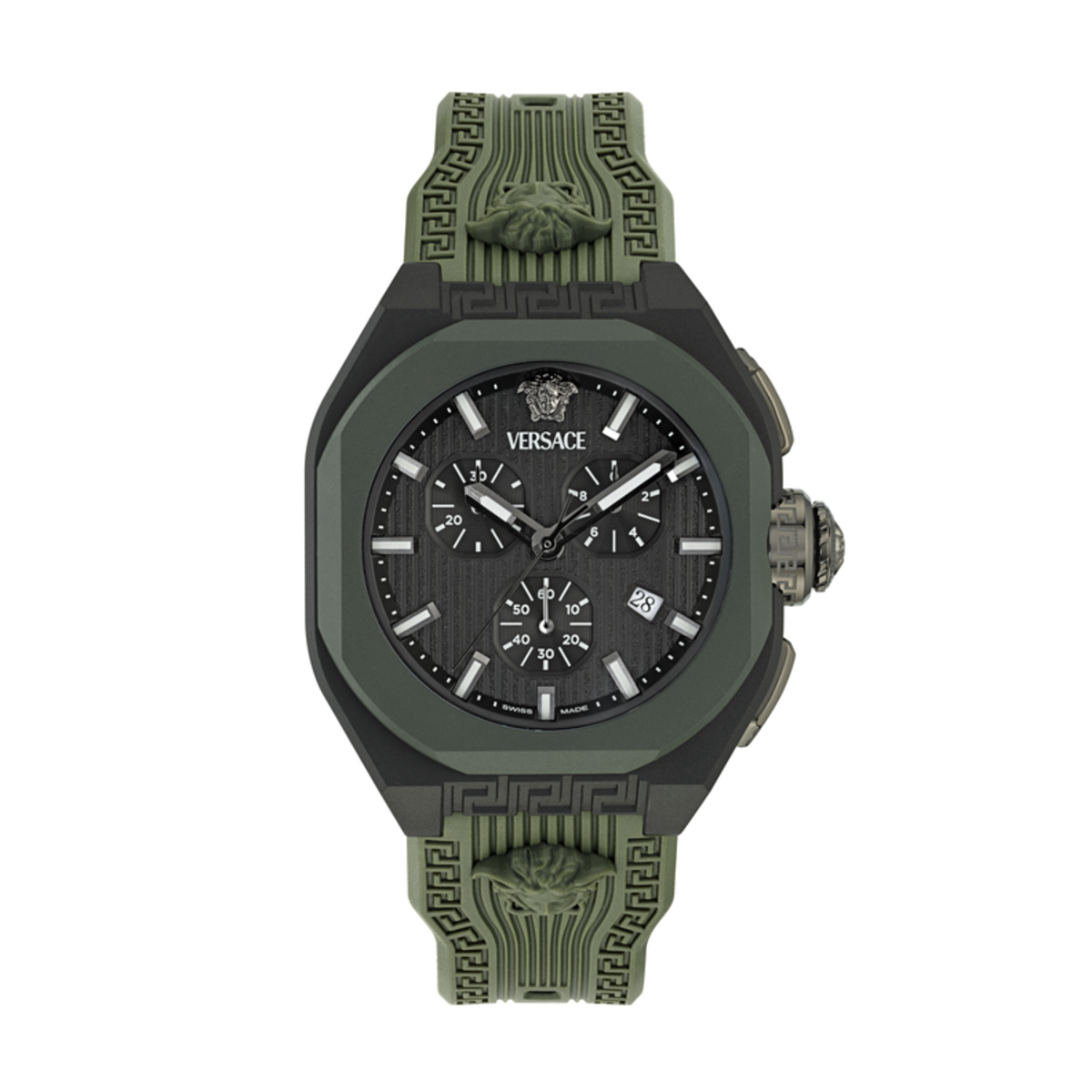 Reloj Versace Hombre VE9L00324 Sport Verde V-Legend. Caja de ceramica Verde y negra de 44mm. Correa de silicona Verde. Cierre hebilla. Esfera negra. Multifunción, cronómetro, calendario. Cristal zafiro. Movimiento quartz Suizo. Sumergible 50m. 3 ańos de garantía. Ref VE9L00324
